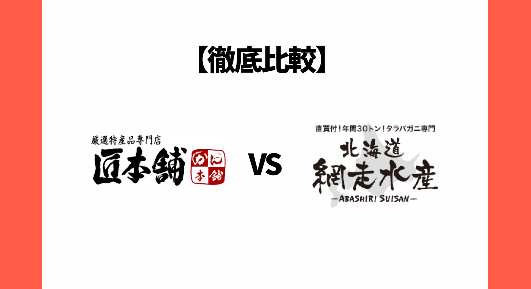 「匠本舗【かに本舗】」と「北海道網走水産」を6つの項目で比較しました!